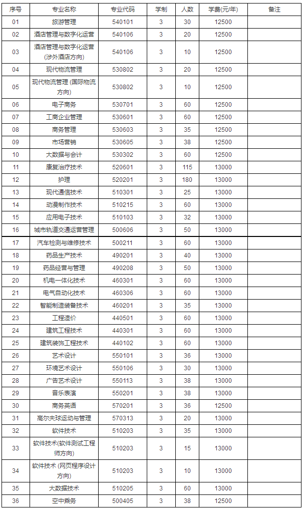 专科:艺术类13000元/年/生,医学类13000元/年/生,理工类13000元/年/生,文管类12500元/年/生。